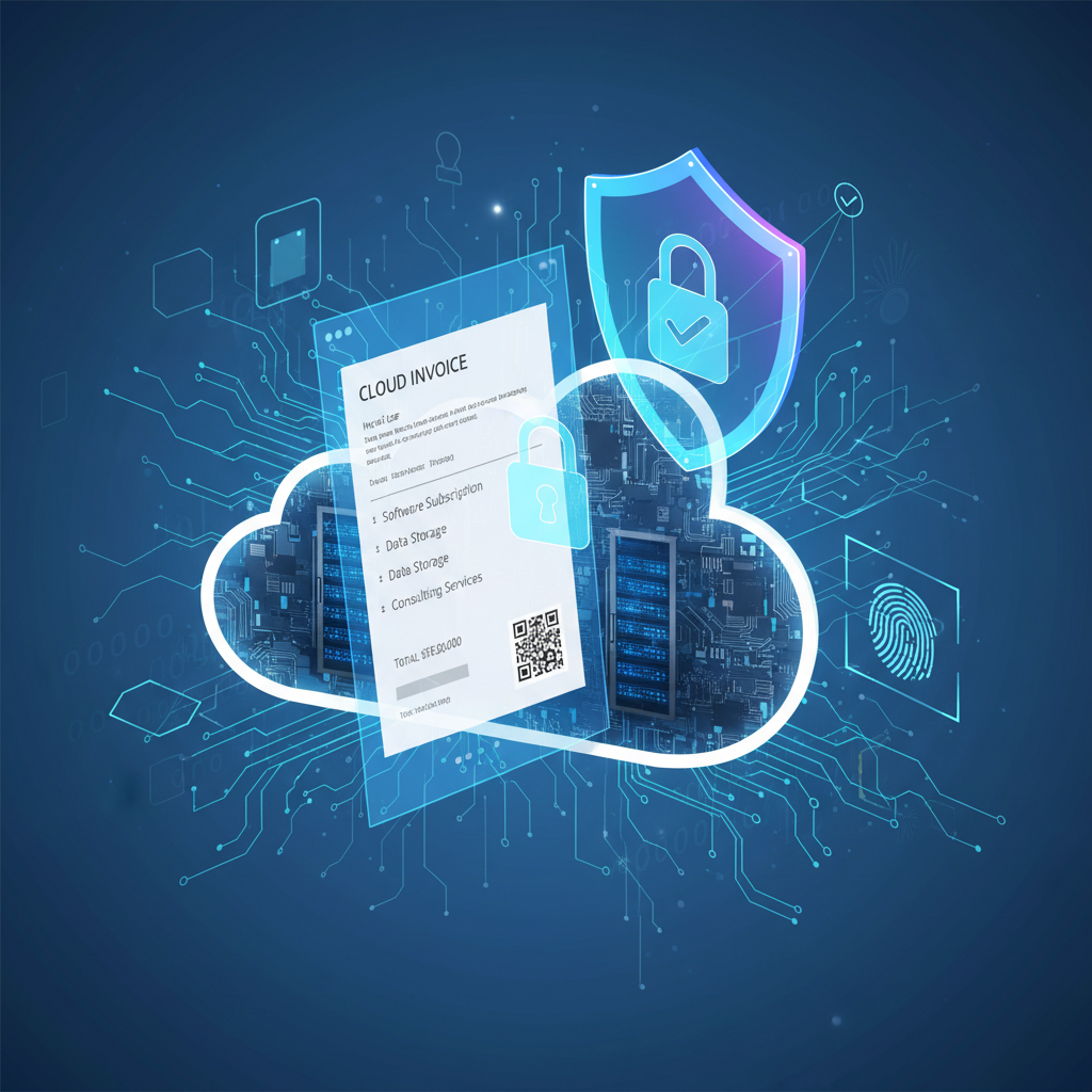 Alt: Secure online invoicing concept illustration with locks and code, emphasizing invoice security online