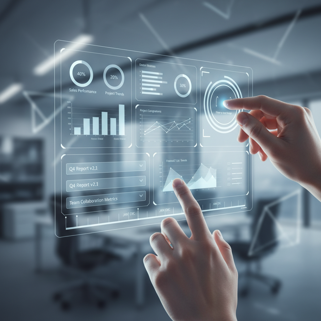 Alt text: Close-up of hands adjusting settings on a smart document dashboard, focus and customization in smart document creation.